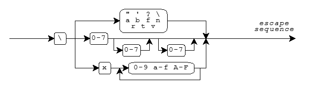 The escape sequence yields a code value that is the numeric value of the arbitrary-length hexadecimal number following the backslash (\). Each h can be any decimal digit 0-9, or any of the letters a-f or A-F. The letters represent the digit values 10-15, where either a or A has the value 10.