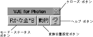 VJEが起動されると、Photonワークスペースの中に、以下のような日本語入力ツール・バーが現れます。